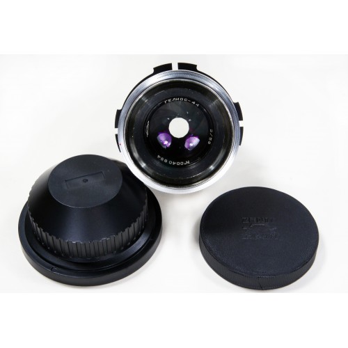 Early version of 44 series. Have 13 aperture blades, like as Carl Zeiss Biotar. HELIOS-44 is a standard coated lens.This famous lens was manufactured in the USSR by KMZ plant at the town of Krasnogorsk near the Moscow city (it has the special symbol).The lens was made in 1960th in the USSR. Focusing in full range, including infinity.